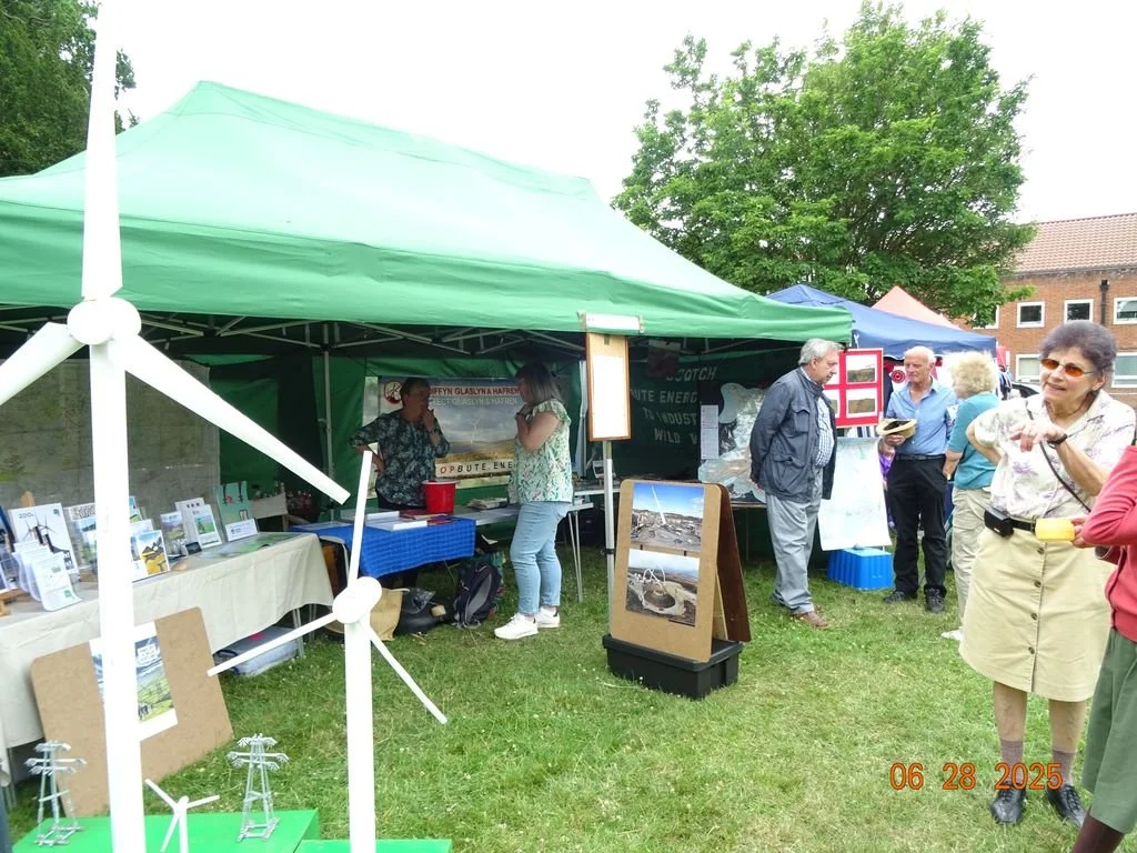 On Saturday 28th June RE-think along with other similar groups from around the region joined forces to host a stand at the Newtown Outdoor Festival. It was a relaxed and informal event and we pleased that many visitors stopped by to talk and take a look at what we had to offer. We were all rather horrified at the number of people who knew little or nothing of Bute Energy's plans to industrialise our beautiful areas. Never mind though, we were all equipped with plenty of reading material for them to take away, explaining just what Bute and others are trying to force upon us all. When people began to realise just how tall the proposed turbines were (over 200m) and how vast the developments would be, covering many square miles, many were visibly shocked.
